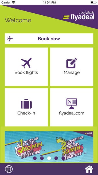Flyadeal متاح لنظام iOS 12.1.2 أو أعلى. الإصدار الحالي من البرنامج هو 2 ، ولا يمكنك تشغيله إلا باللغة الإنجليزية.